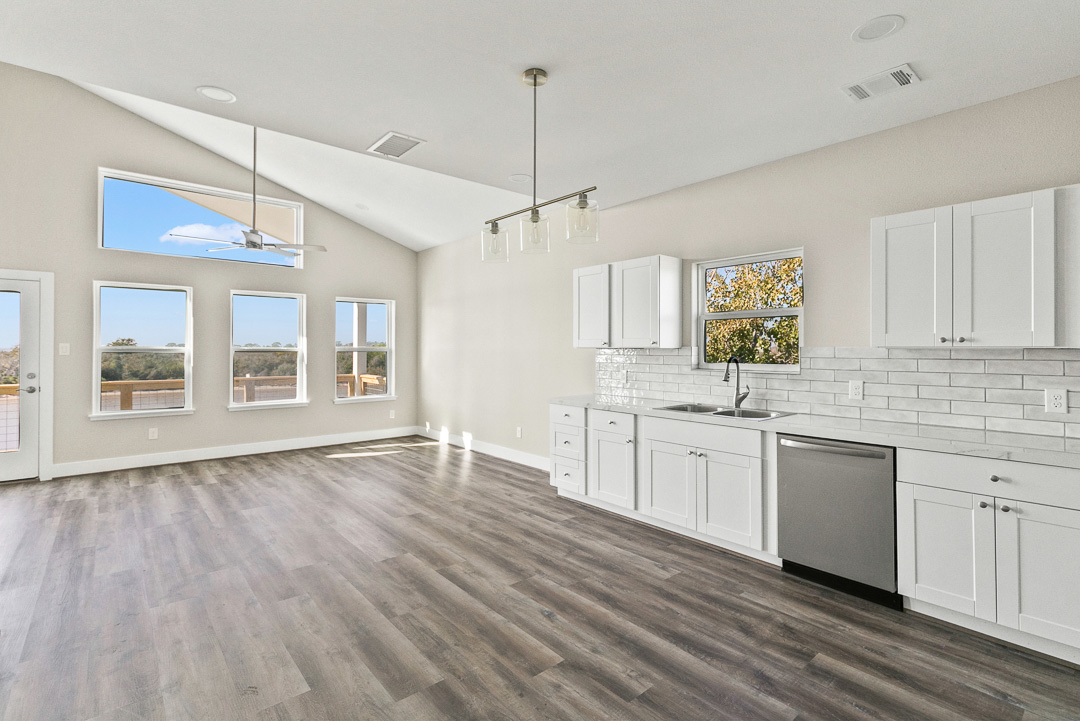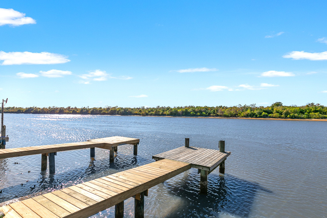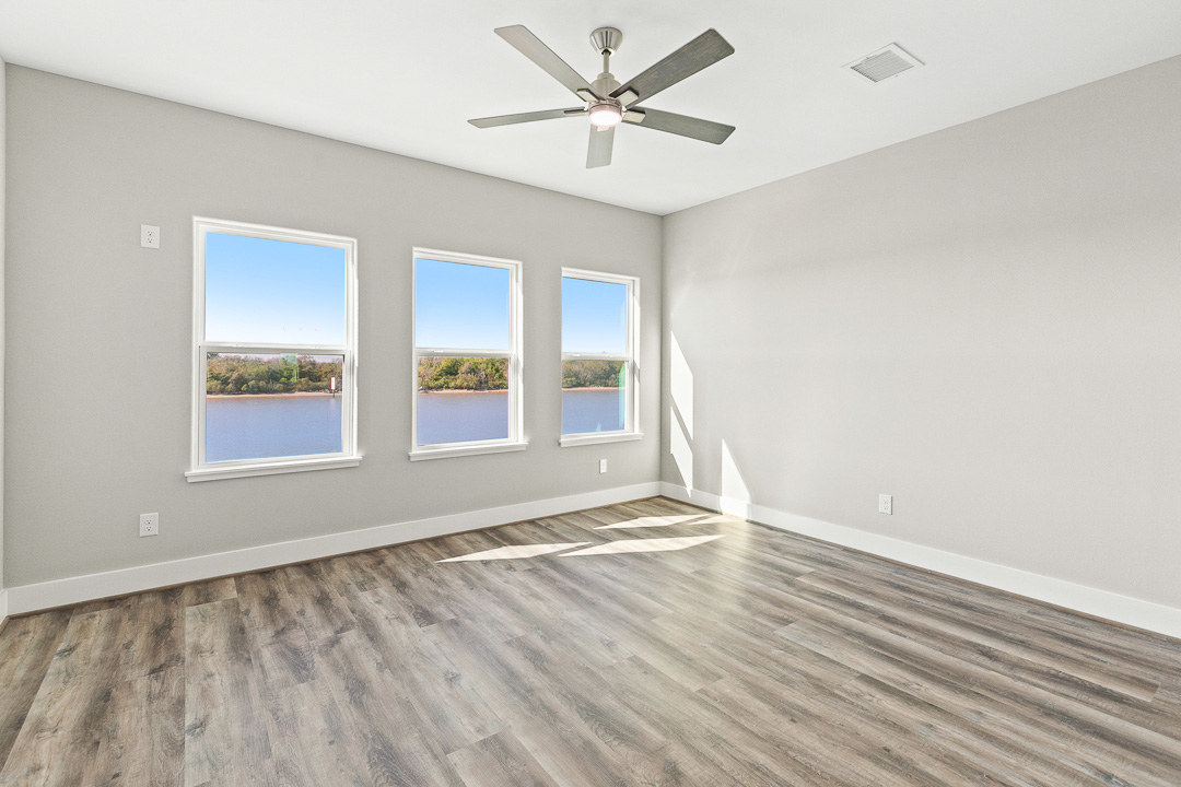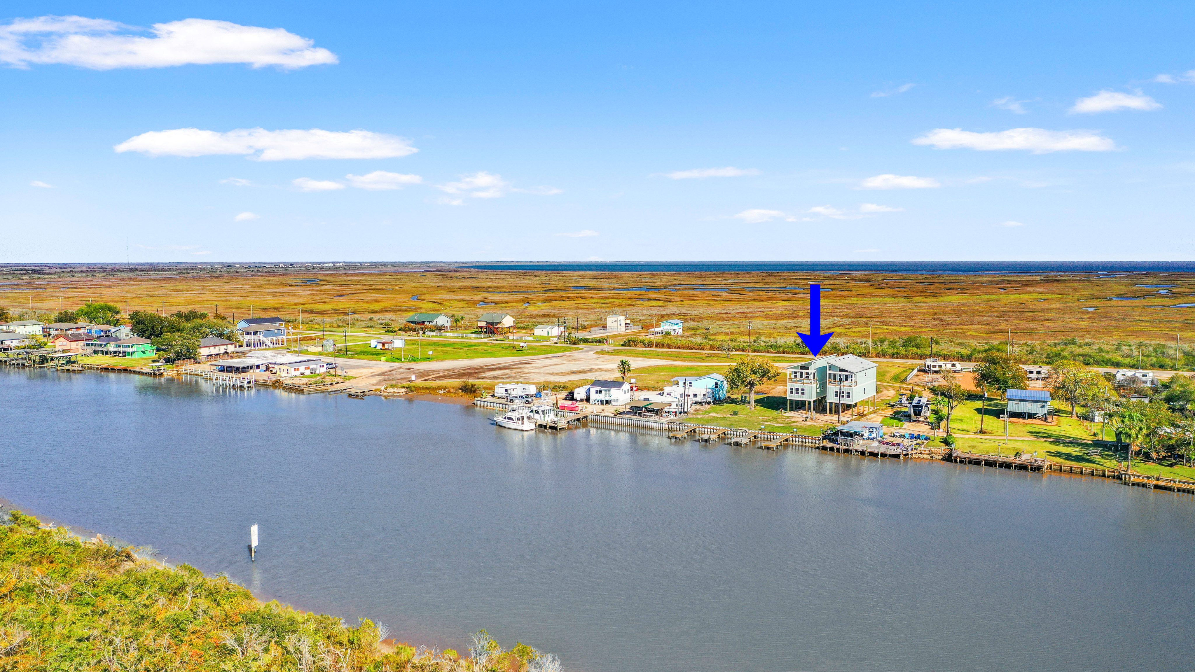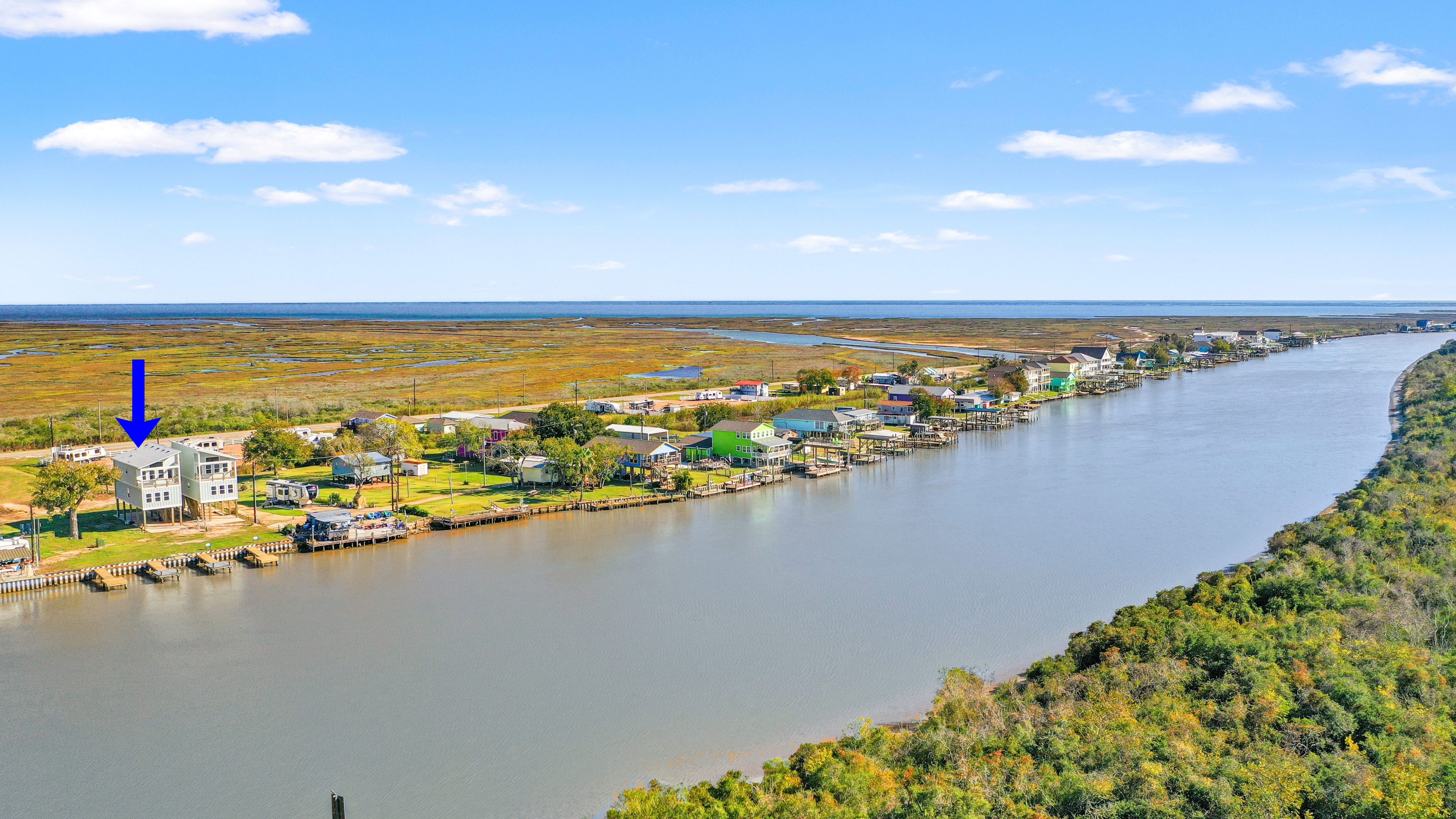 Riverfront new construction offering open water views of the Colorado River, along with long-range views over East and West Matagorda Bay. This 4-bedroom 3-bath home mirrors its neighboring plan and features quartz counters, stainless appliances, tile surrounds, LVP flooring, and cement board siding. The second level includes the main living spaces, a guest bedroom, and a full bath with private access that works well as a junior suite. Downstairs you’ll find the primary suite, two guest rooms, a guest bath, and stacked washer and dryer. A cargo lift will reach both floors, and the loft will have access, making it a great place for a couple of extra beds or storage. Enjoy sunsets from the upper deck or head to your private fishing pier for a slow morning on the river. Close to the beach and the area’s well-loved fishing grounds. Perfect for weekend use, full-time living, or a vacation rental. Reach out with any questions or to schedule a tour. Cargo lift & loft access to be installed.
